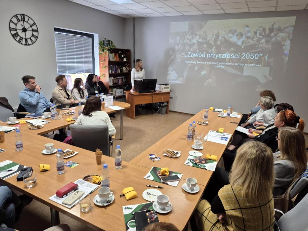 Pani Dyrektor PCKU, Magdalena Malczyk, podsumowała wyniki ubiegłorocznej edycji konkursu „Zawód przyszłości 2050”. Konkurs cieszył się dużym zainteresowaniem, a jego celem było wskazanie zawodów, które mogą stać się kluczowe w nadchodzących dekadach, w związku z postępującą cyfryzacją i zmianami na rynku pracy. Pani Dyrektor zapowiedziała również start tegorocznej edycji konkursu, który ponownie zachęci młodzież do myślenia o przyszłości zawodowej i kształtowaniu swoich umiejętności w zgodzie z wymaganiami przyszłych branż.