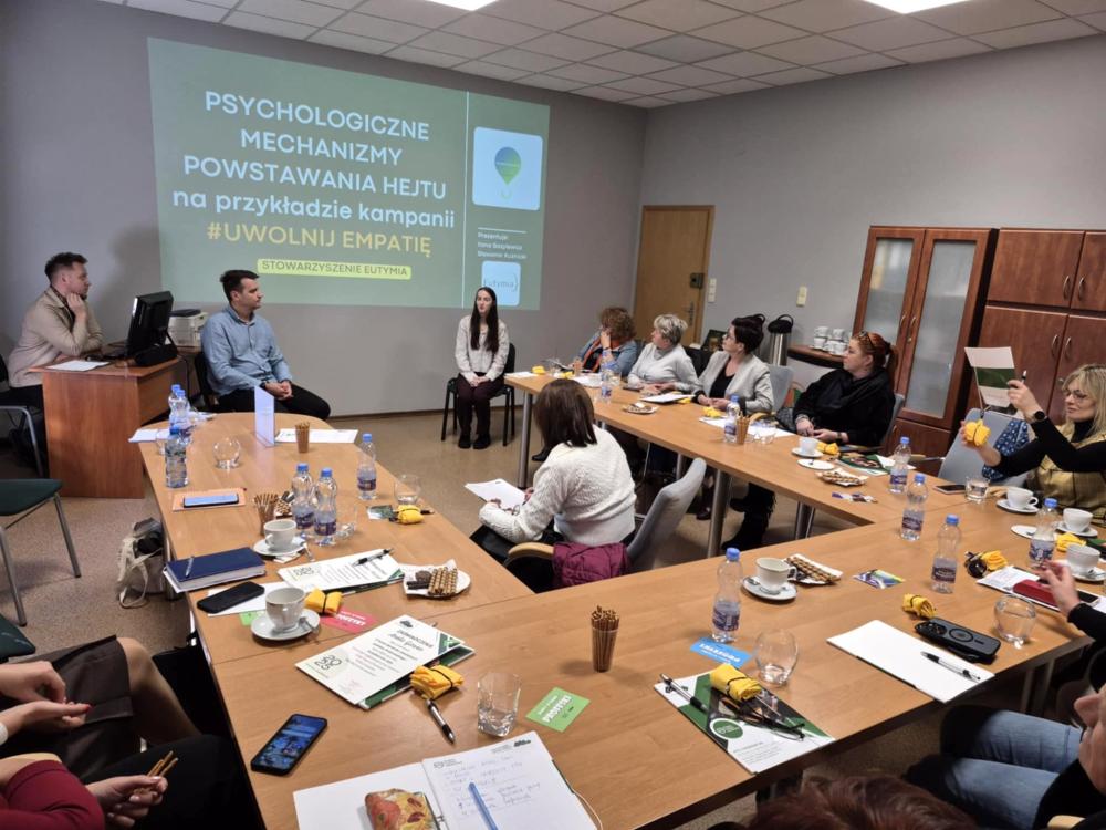 Kolejnym istotnym punktem forum była prezentacja Stowarzyszenia Eutymia #Uwolnij Empatię, które omówiło psychologiczne mechanizmy powstawania hejtu. Temat okazał się niezwykle istotny w kontekście pracy doradców zawodowych, którzy nie tylko pomagają w planowaniu ścieżki kariery, ale także wspierają młodzież w budowaniu zdrowych relacji interpersonalnych, zarówno w świecie offline, jak i online.